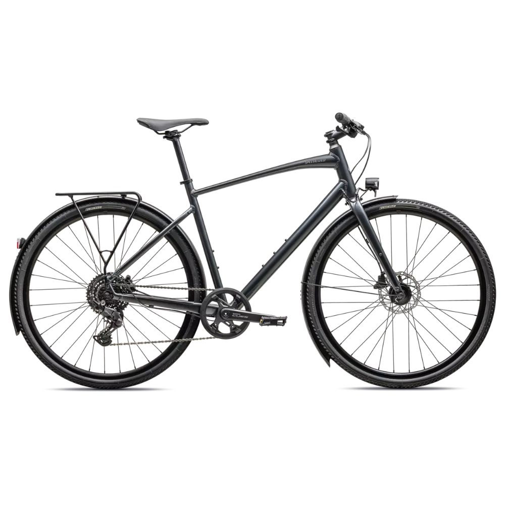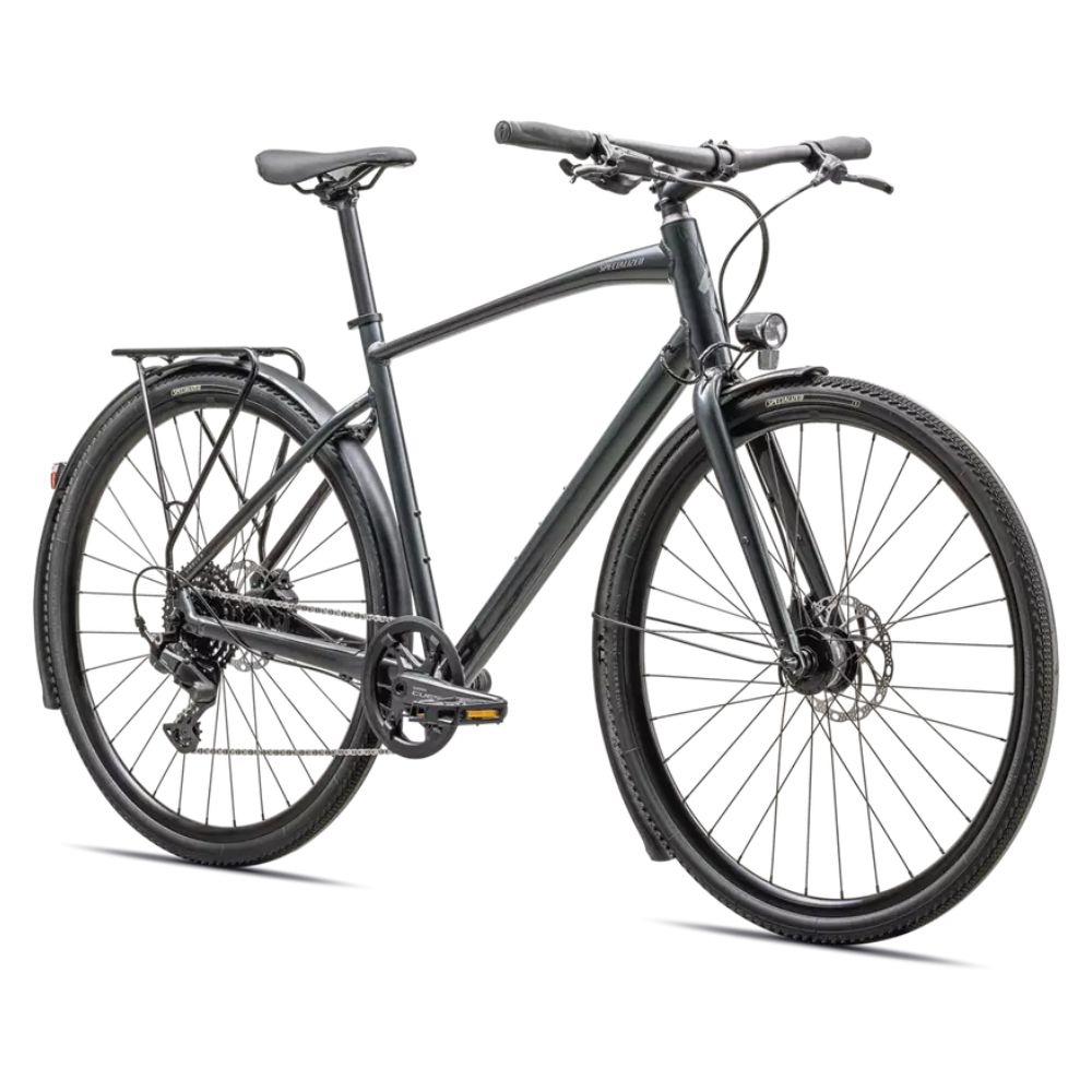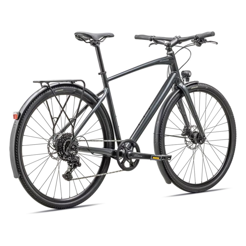 - Cuadro: Aluminio Premium A1 Specialized, Geometría Fitness, Tubos Conificados, Cableado Interno, Freno de Disco de Montaje Plano, Cierre Rápido, Soportes para Portaequipajes/Guardabarros Plug + Pla