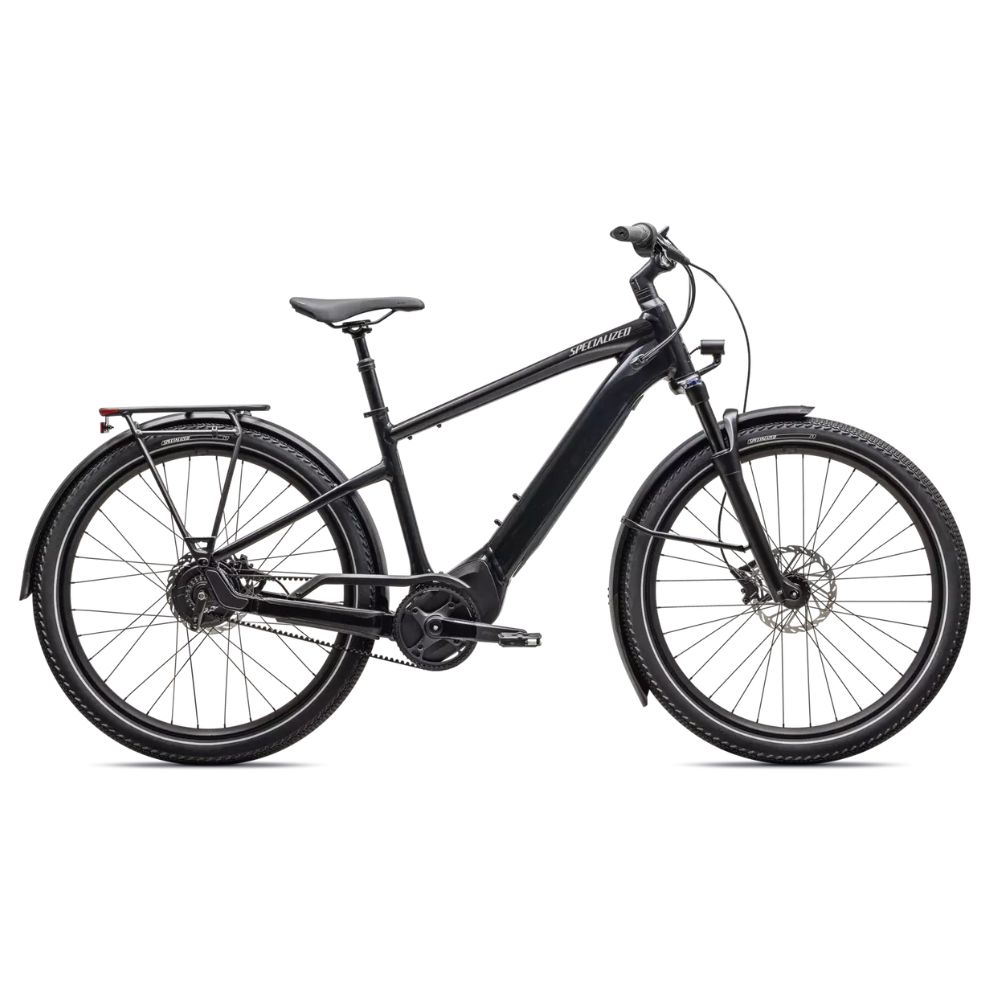 Equipado con guardabarros DRYTECH, luces LED delanteras y traseras y portaequipajes HD trasero con capacidad de 27 kg. El portaequipajes trasero es compatible con asientos de bicicleta para niños y la bicicleta también está clasificada para arrastrar un remolque de eje pasante.