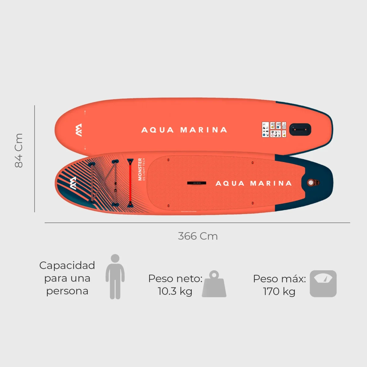 ¡El Stand Up Paddle Monster by Aqua Marina es perfecto tanto para principiantes como para experimentados! Esta tabla de SUP Monster fue diseñada para brindar versatilidad. Cuenta con una construcción ultraestable lo que permite utilizarla en aguas tranquilas u olas pequeñas con todo lo que necesita nada más sacarlo de la caja. Compacto, liviano y ultraportátil.