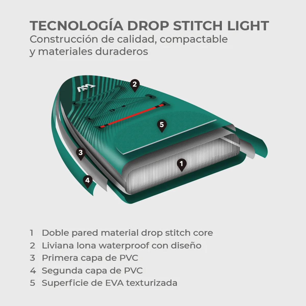 - Fabricado con Tecnología Drop Stitch Light, construcción de alta calidad, transportable y durable.