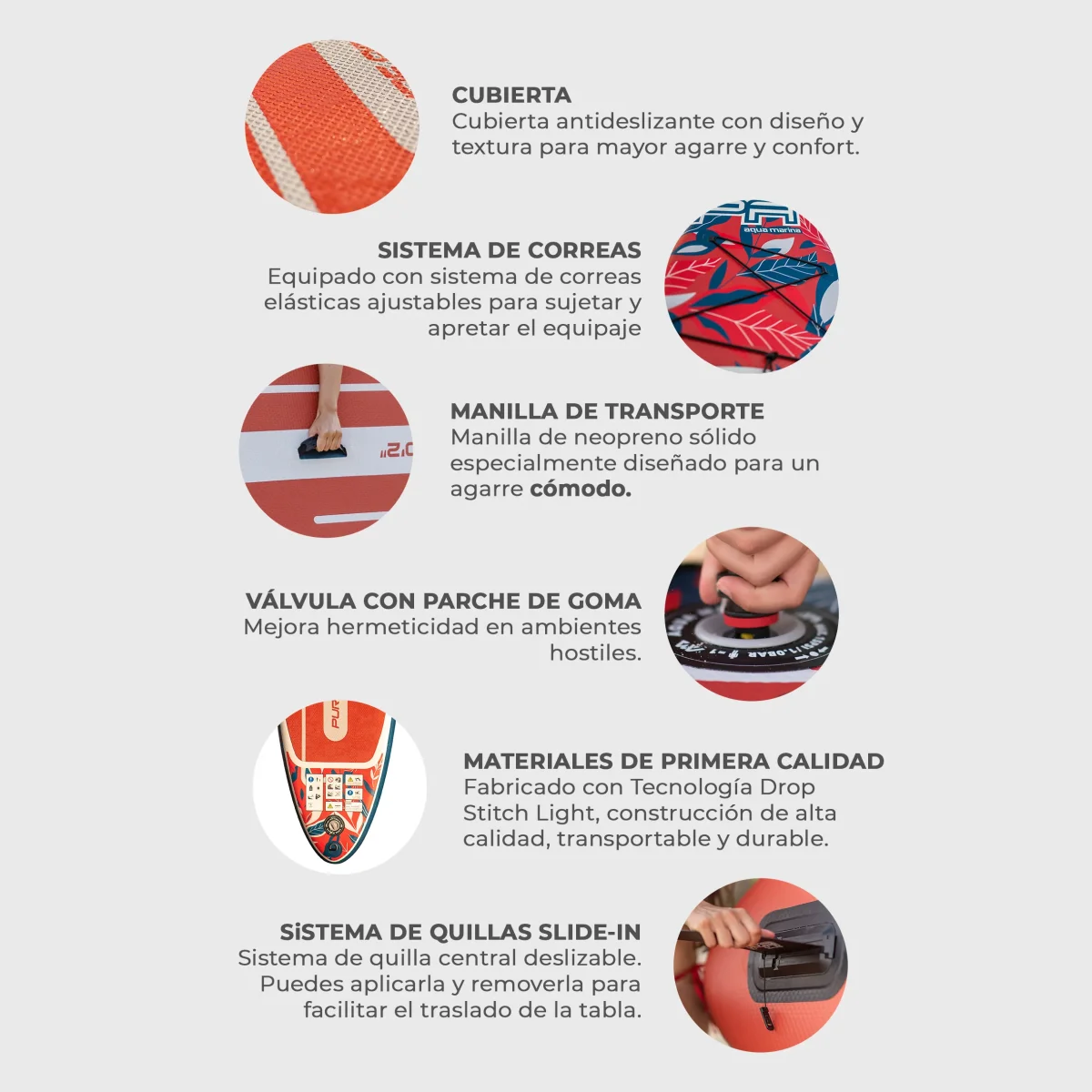 - Fabricado con Tecnología Drop Stitch Light, construcción de alta calidad, transportable y durable.