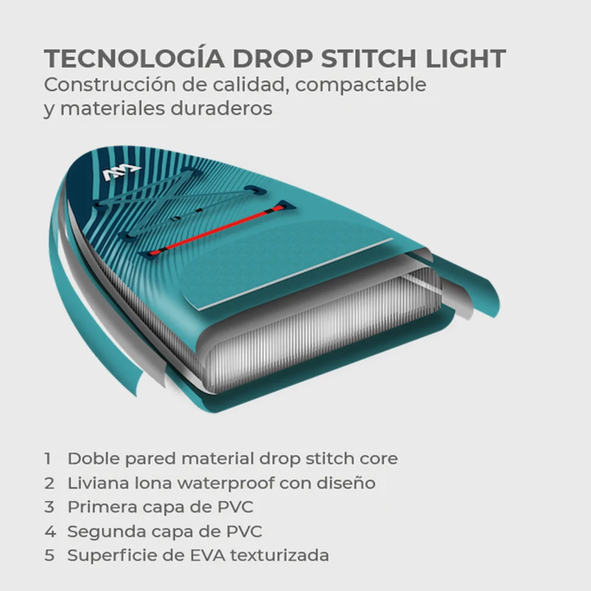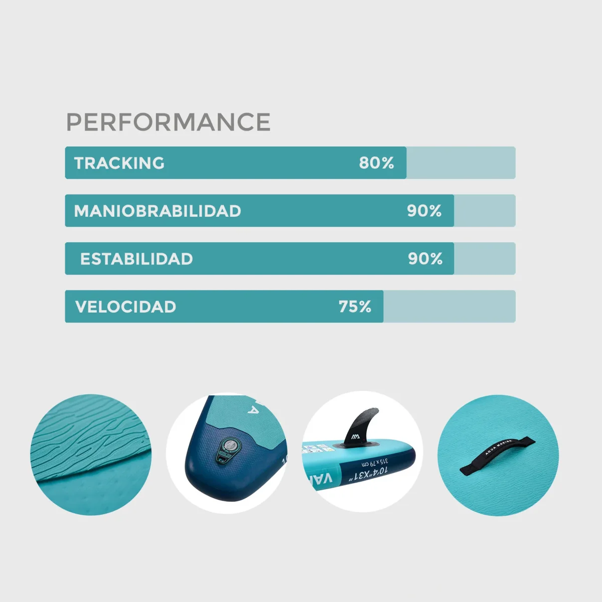 El Stand Up Paddle Inflable VAPOR by Aqua Marina presenta una cola más ancha, diseñada para aquellos que buscan una mayor estabilidad. Está equipado con el sistema ultra elástico RED STRAP™, para transportar más carga con facilidad y seguridad. Su almohadilla presenta una nueva textura ranurada de arena, brindando un agarre superior.