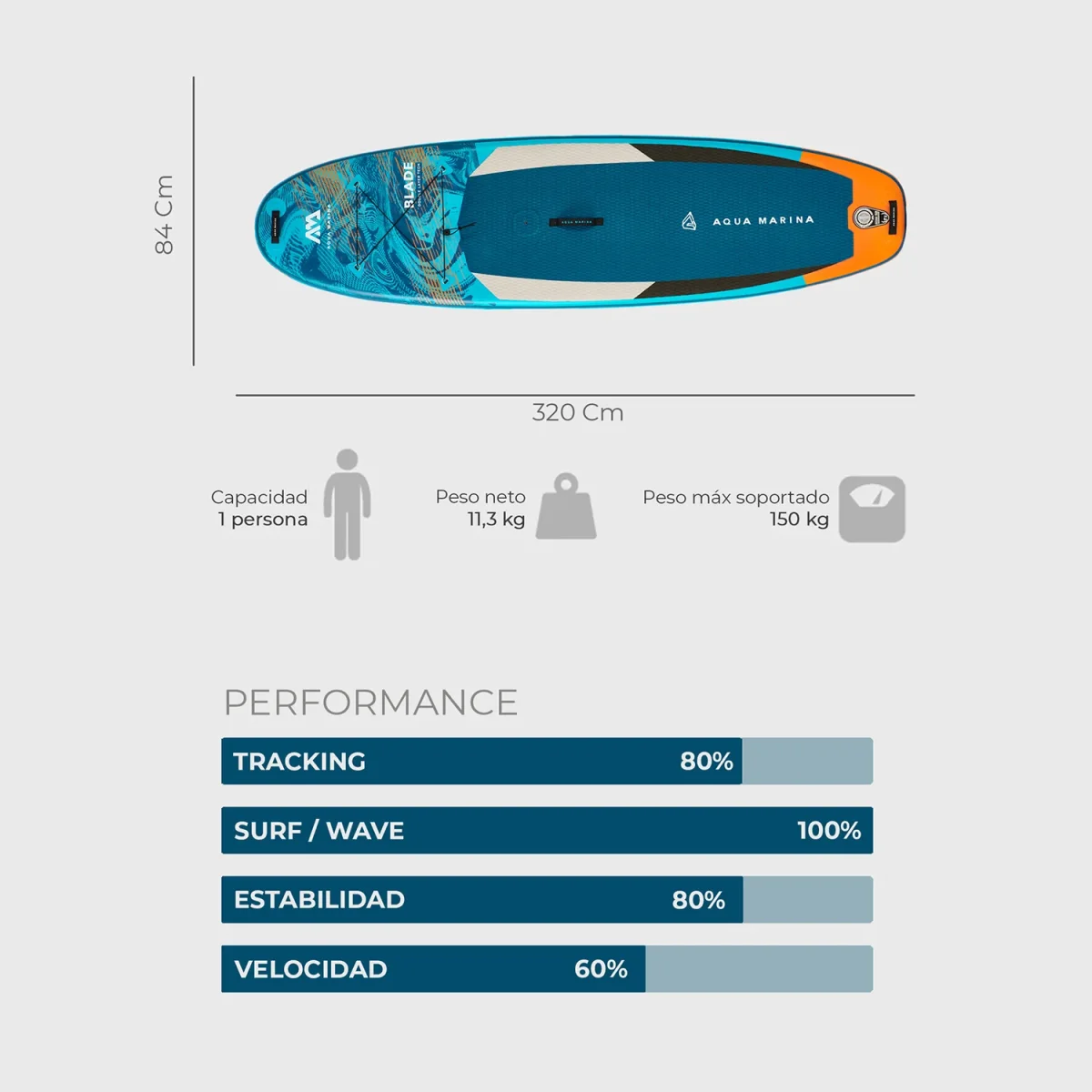 La Tabla de Stand Up Paddle Inflable de Windsurf BLADE by Aqua Marina se adapta a todos los niveles de experiencia y se desempeña perfectamente tanto en paddle surf, remando o en windsurf. Puedes agregarle una vela (no inluída) para disfrutar del viento o usarla de manera tradicional.