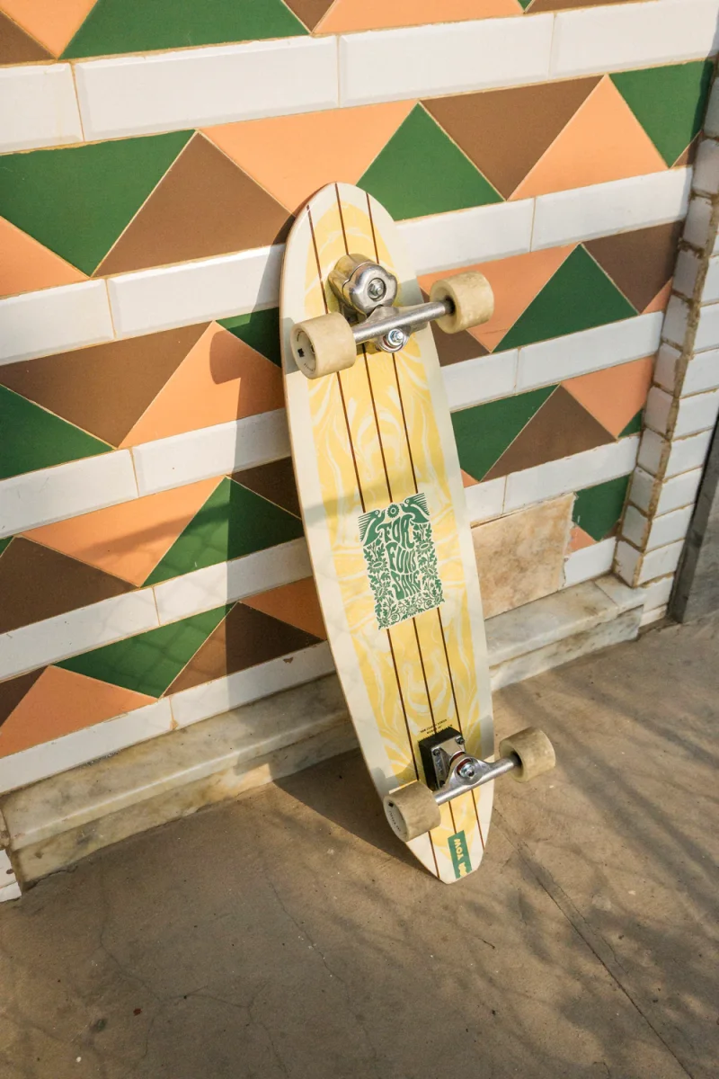 La Waikiki 40” es nuestra tabla más larga. El diseño de su forma está inspirado en los longboards clásicos con los que los locales de Waikiki, en Hawái, surfean desde hace décadas. Práctica = pasos cruzados, giros amplios y paseos en nariz gracias a una gran superficie y una distancia entre ejes súper larga (26”). Moldeado en un cóncavo bajo para una auténtica sensación vintage. Montado con el sistema Meraki (S5) y ruedas Ura de 66×51 mm 80A (medianas) para una conducción suave en la mayoría de los terrenos.