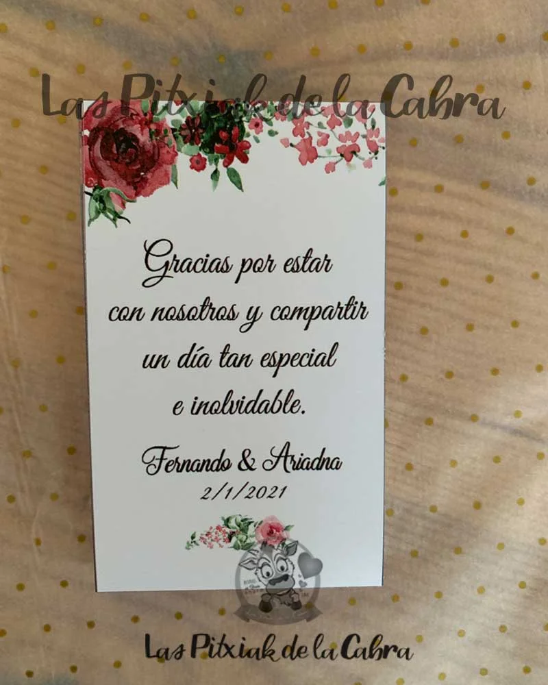 Las tarjetas de agradecimiento para bodas y eventos miden 60x100mm.