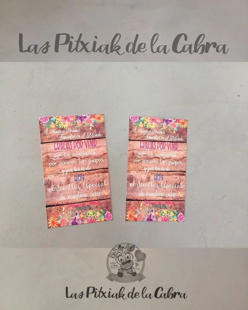 Las tarjetas de agradecimiento para bodas y eventos miden 60x100mm.