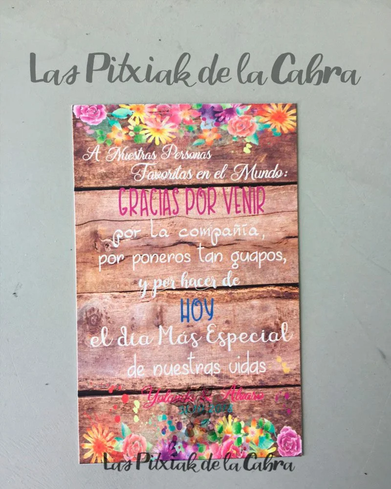 ¿Sabías que…? Este modelo de tarjeta de agradecimiento Madera Yolanda fue elegida por Yolanda y su pareja, ellos fueron los primeros novios para los que diseñamos esta tarjeta. Es decir, que aunque en la web veis modelos limitados, todo lo que soñéis, para vuestra boda, bautizo, comunión, cumpleaños o cualquier otro evento, nosotros lo haremos posible.