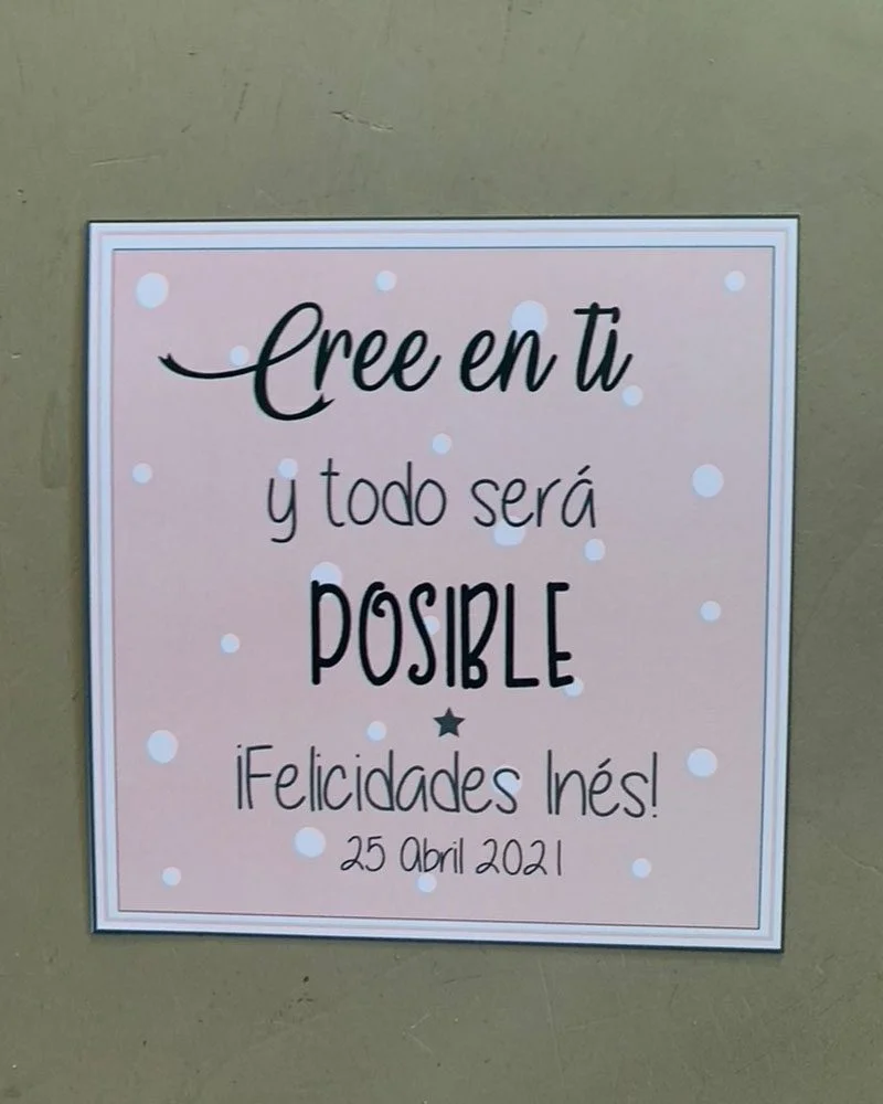 ¿Sabías que…? Este modelo de Tarjeta Cree en Ti la primera vez que la hicimos fue el cumpleaños de Inés pero se puede adaptar para el evento que necesites. Es decir, que aunque en la web veis modelos limitados, todo lo que soñéis, para vuestra boda, bautizo, comunión, cumpleaños o cualquier otro evento, nosotros lo haremos posible. Si tú puedes soñarlo nosotros lo plasmaremos en papel.