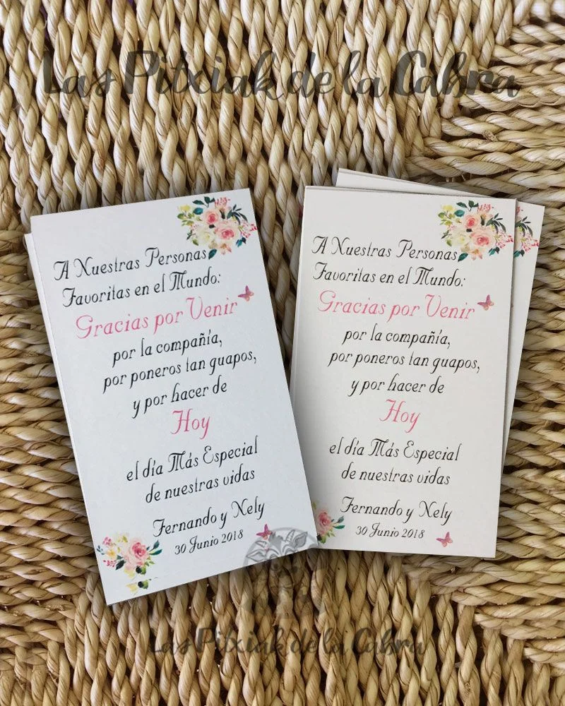 Las tarjetas de agradecimiento para bodas y eventos miden 60x100mm.