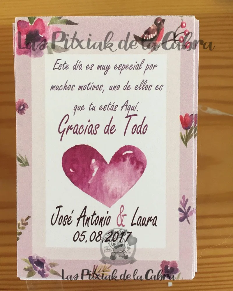 Las tarjetas de agradecimiento para bodas y eventos miden 60x90mm.