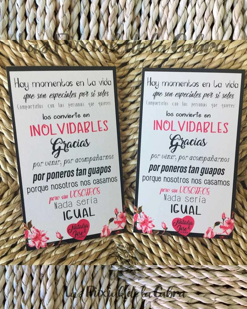 Las tarjetas de agradecimiento para bodas y eventos miden 60x100mm.