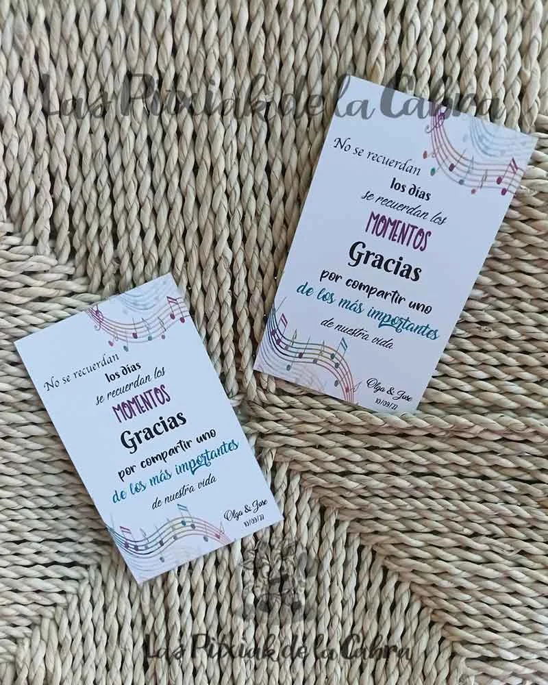 Las tarjetas de agradecimiento para bodas y eventos miden 60x100mm.