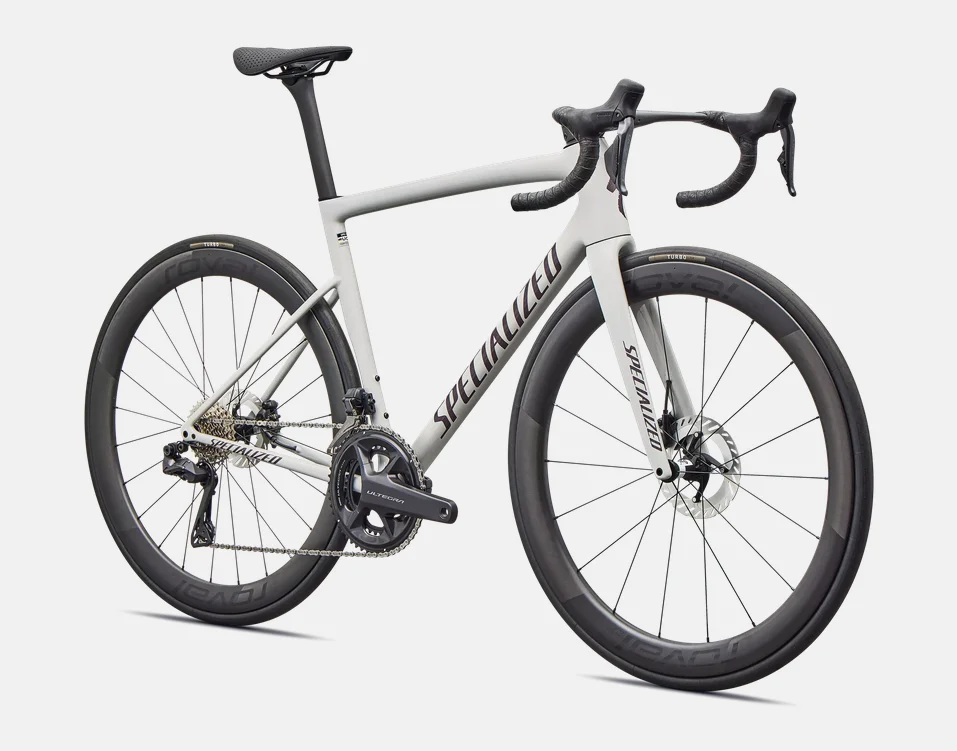 - La Tarmac SL8 Pro ofrece un rendimiento excepcional. Monta un grupo completo SRAM Force AXS con potenciómetro, un juego de ruedas Roval Rapide CL III (tubeless-ready), compatibles con tubeless, y un manillar Roval Rapide combinado con una potencia SL7. Tiene todo lo que necesitas para que salgas a competir en cuanto la saques de la caja.