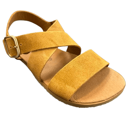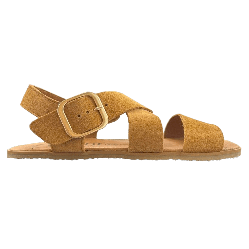 Elaboradas con piel serraje, suave, transpirable y de gran calidad, las Terra cuentan con un diseño de tiras cruzadas que sujetan el pie sin oprimir, y una hebilla ajustable que asegura un ajuste cómodo y elegante. Su plantilla ergonómica, sin inclinación, aporta máxima comodidad y sensación de libertad, mientras que la horma ancha respeta el espacio natural de los dedos.