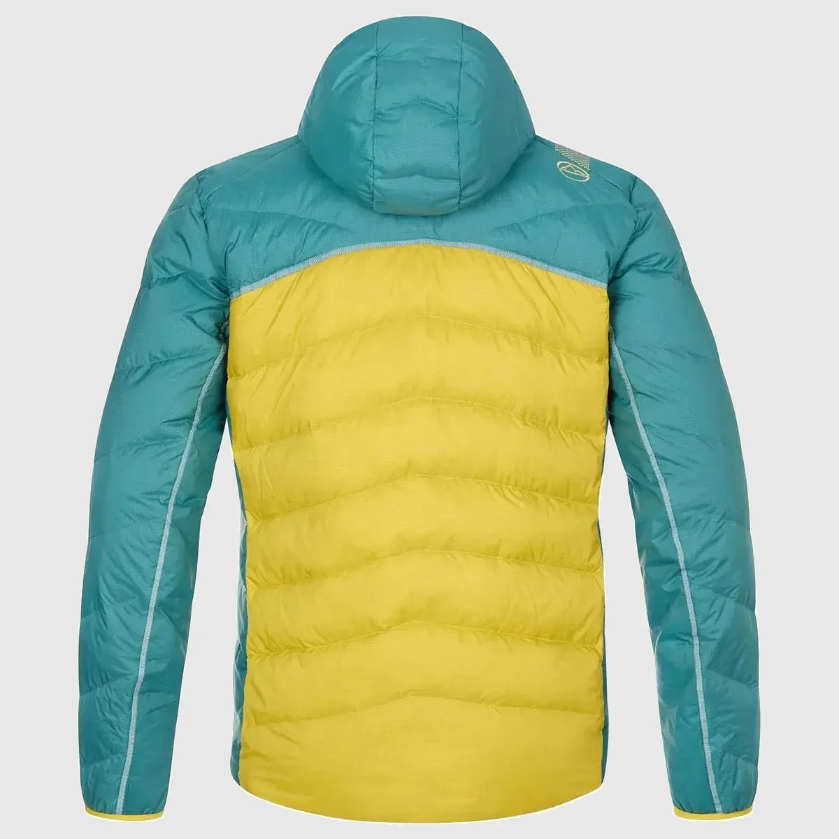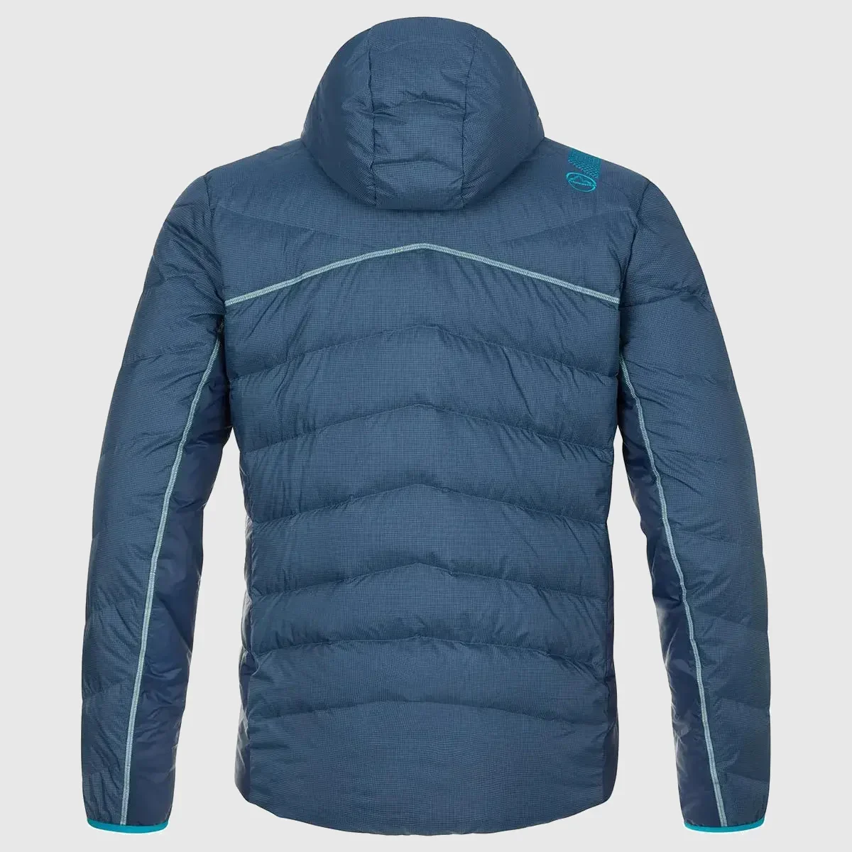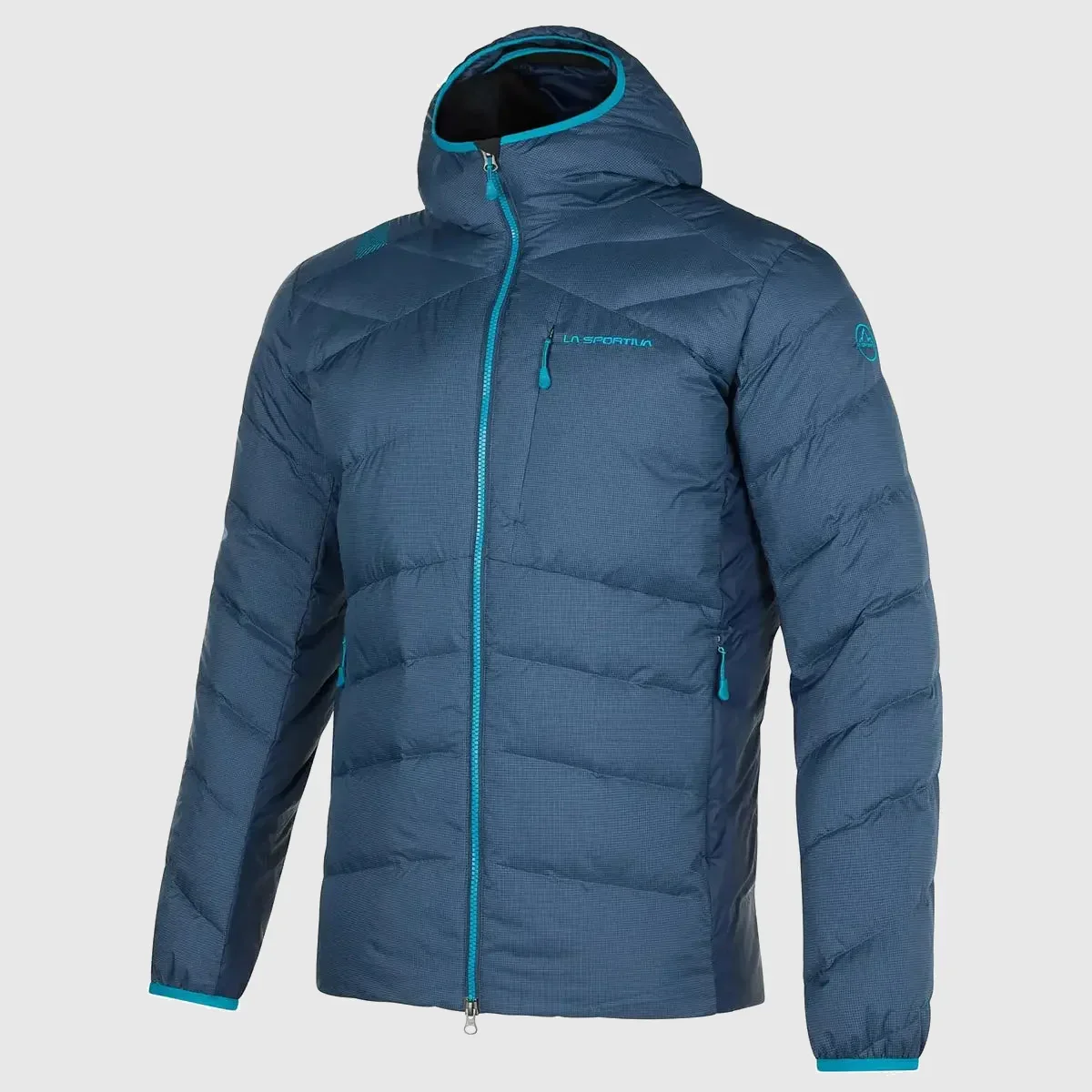 Una chaqueta de plumón ligero con un aspecto elegante y dinámico. Incluye bolsillos con cremallera invisible y una práctica capucha ajustable.