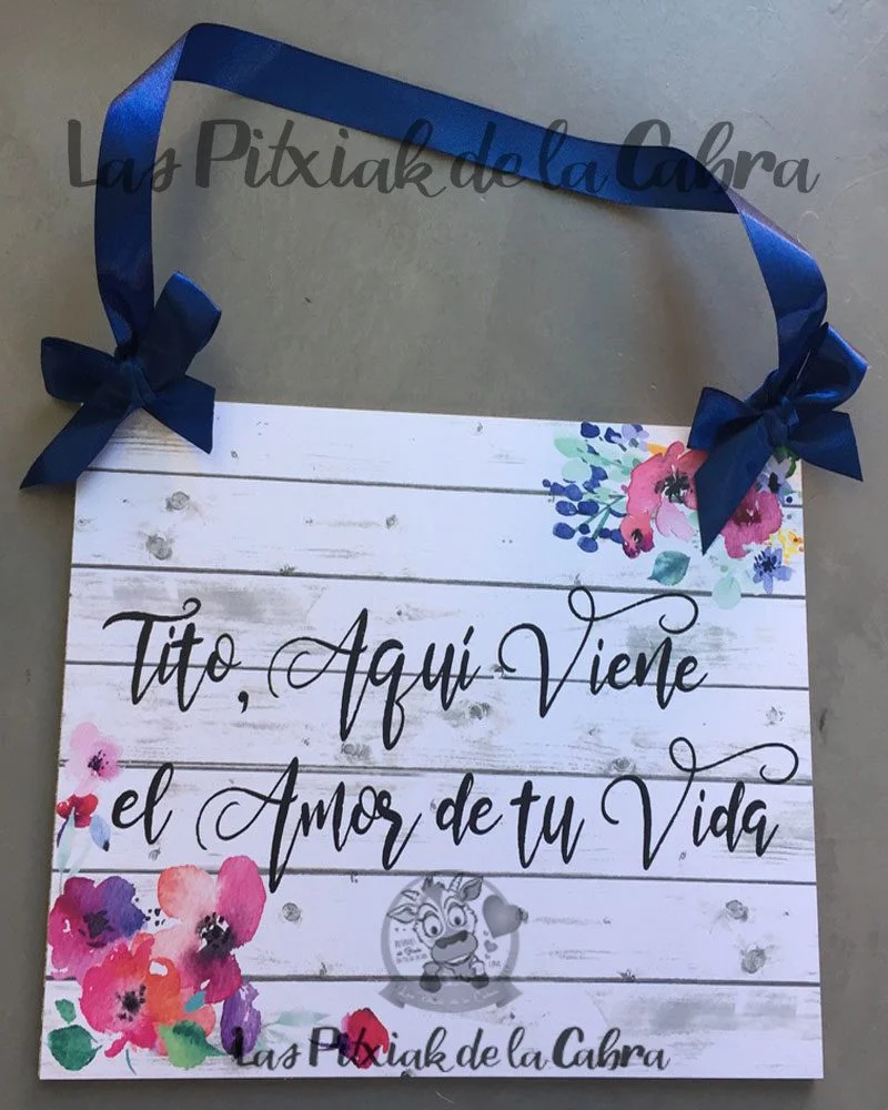 Este tipo de carteles llevan la impresión sobre papel, una base de panelado de madera y el lacito para colgar. Son carteles ligeros que no pesan pero también son resistentes, no se doblan, ni rompen facilmente. El diseño se hace completamente personalizado, así como el lacito, también podemos ponerlo del color que queráis. Su medida es de 297×210 mm el modelo rectangular y de 285x235mm el modelo con forma de corazón.