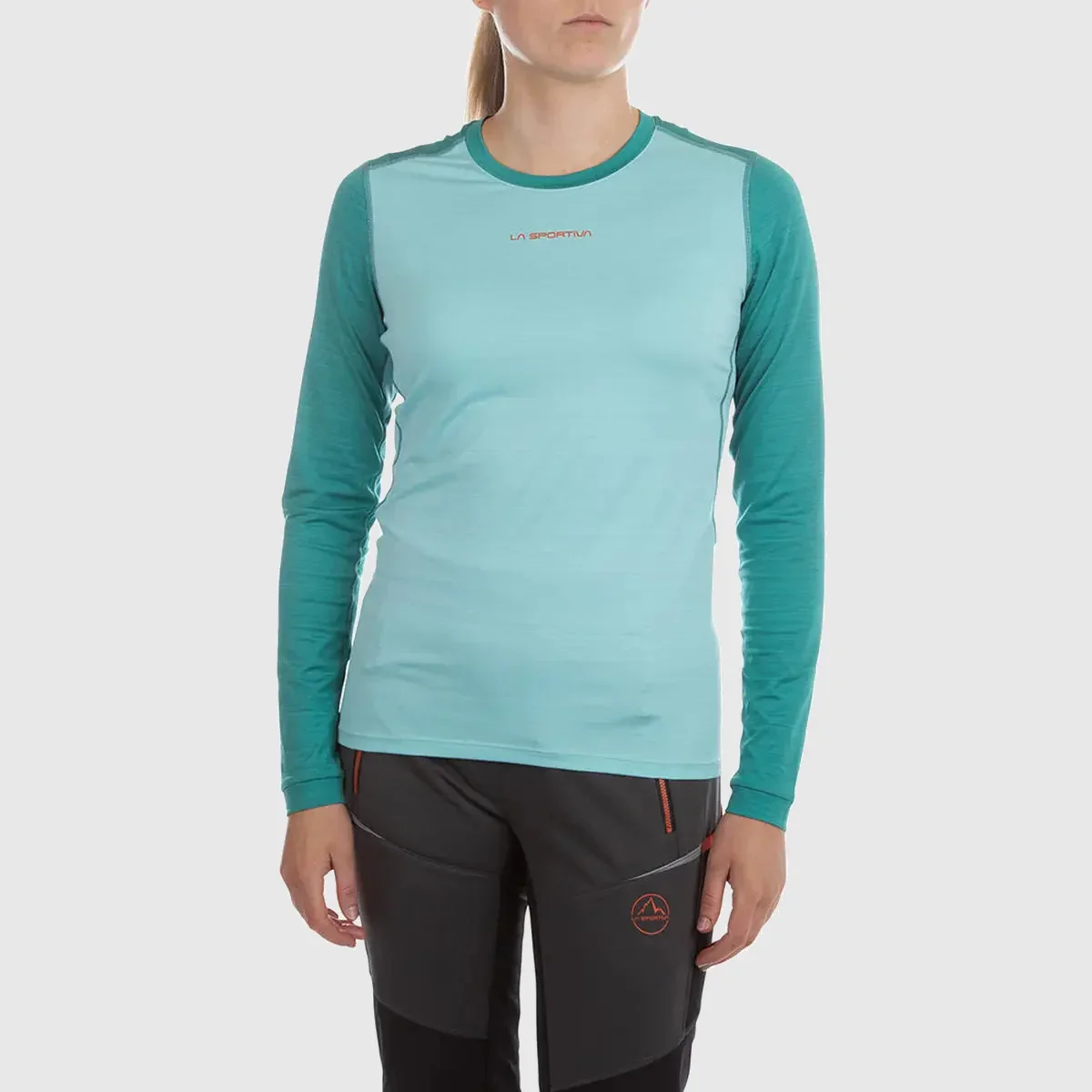 Prenda diseñada para rendir durante actividades invernales de alto rendimiento, la Tour Long Sleeve presenta una mezcla ecológica de poliéster reciclado y un ajuste específico para mujeres y así brindar transpirabilidad y comodidad.
