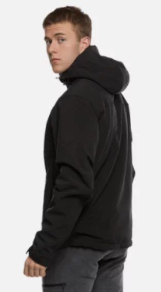 Su diseño técnico incluye capucha fija con ajuste facial, puños regulables y ceñidor en el bajo, asegurando comodidad y protección total.