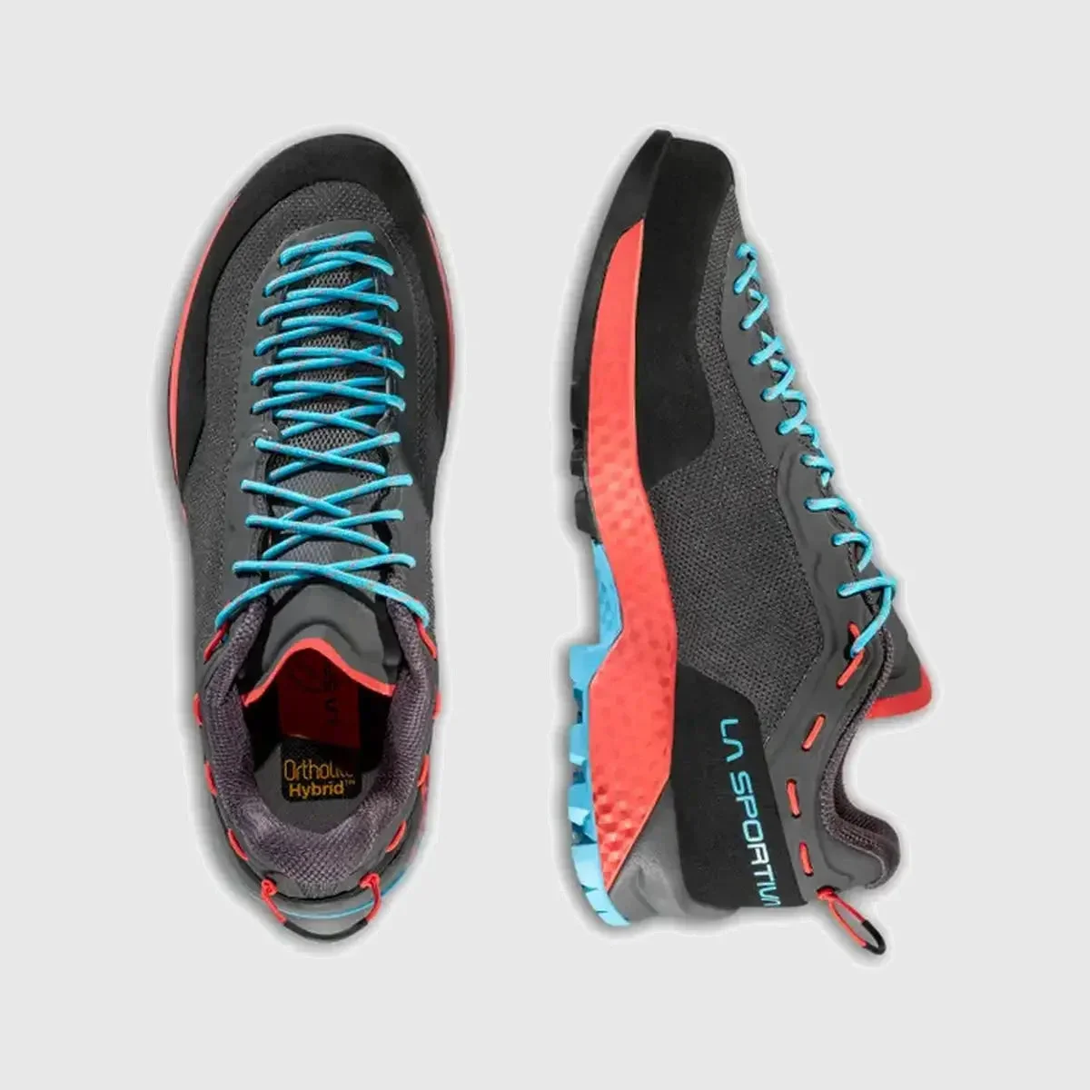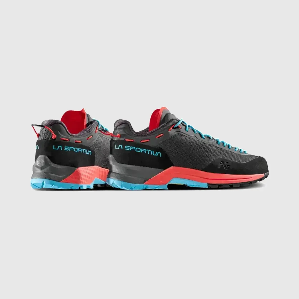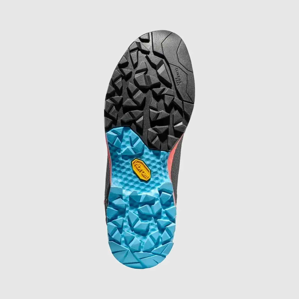 TX Guide es el calzado más técnico de la línea La Sportiva TX Series. Concebido para la aproximación técnica y la escalada, pensada para los guías de montaña y los trabajadores de la montaña que busquen un producto de altas prestaciones y duradero en el tiempo. Versátil, ligero y protegido, perfecto para la aproximación walk-run & climb tal como refleja la estética derivada de una perfecta combinación running/approach y las soluciones técnicas de la escalada (suela, sistema de lazado). Adopta una nueva horma Tech Fit: ajustada y envolvente para unas máximas prestaciones. Muy estable en la punta, aumentando la estabilidad en las presas pequeñas durante la escalada. Construcción en mesh altamente resistente a la abrasión y fabricada en una sola capa para optimizar el volumen interno, con refuerzos internos en microfibra y refuerzos externos en TPU. El lazado es asimétrico approach-style hasta la punta para tener la máxima precisión mientras la parte posterior rescata la estética Mythos Style que permite un perfecto ajuste del talón. La bandeleta protectora Climbing-inspired es en material ligero PU-TECH Lite. La construcción de la lengüeta deriva de las soluciones aplicadas en el calzado de running: el calcetín evita la entrada de elementos externos durante el camino. El paquete suela/media suela está realizado en doble EVA comprimida amortiguada en el talón y estabilizadora en la punta: la parte delantera de la media suela monta una capa en TPU que ofrece al mismo tiempo estabilidad en la climbing zone, perfil medio y una capa protectora rock-guard. La suela de doble compuesto Vibram MegaGrip e Idrogrip es la perfecta combinación entre adherencia y durabilidad mientras el talón pronunciado aumenta la frenada en bajada y aumenta el grip en subida. TX Guide: be your guide.