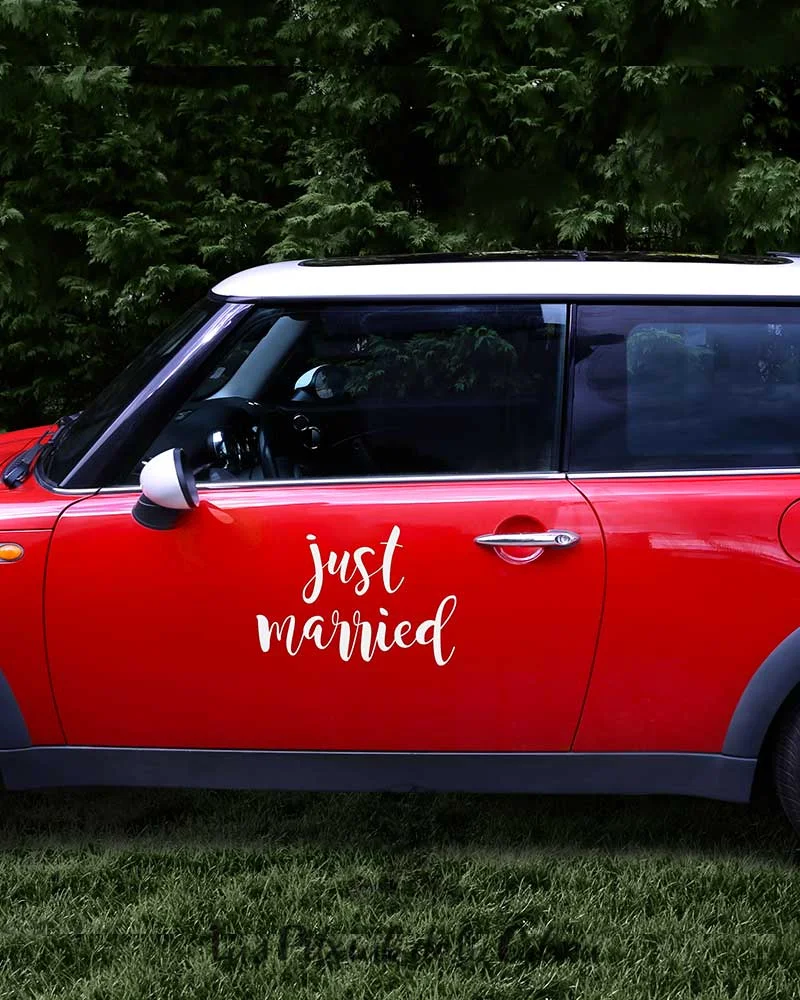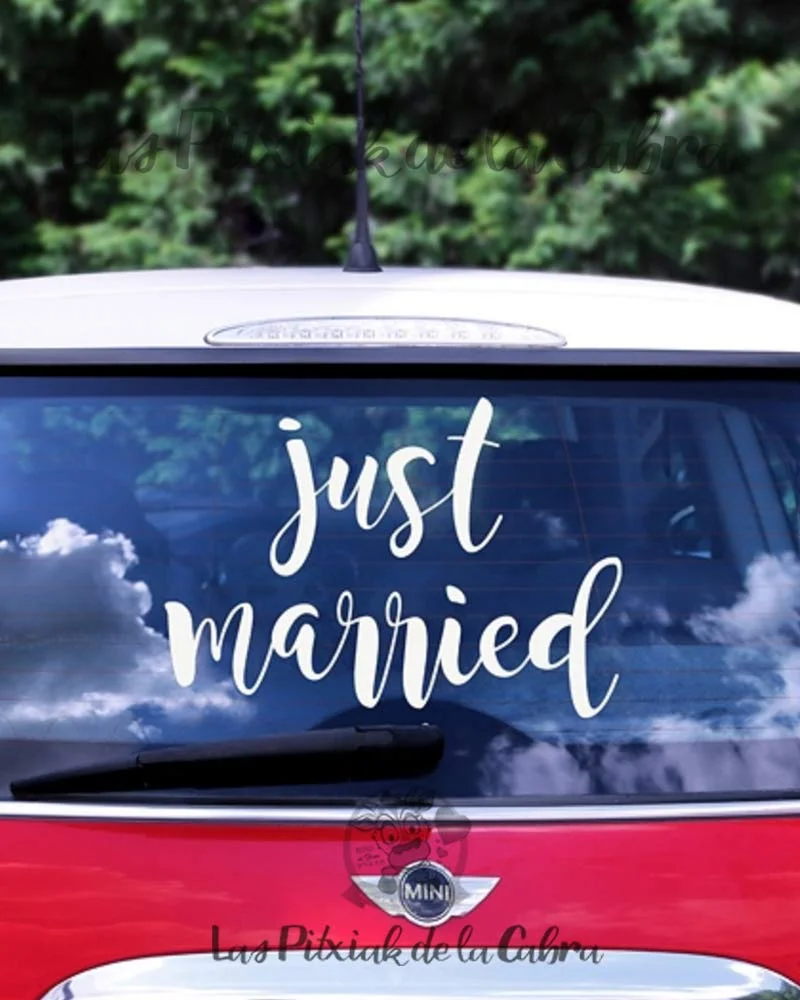 Decora el coche de vuestra boda con este bonito Vinilo para coche “Just Married”