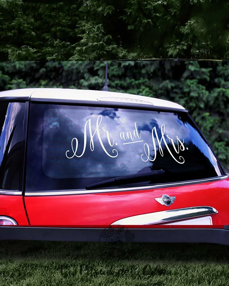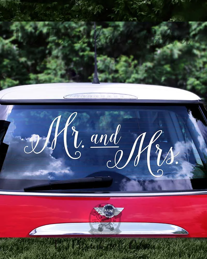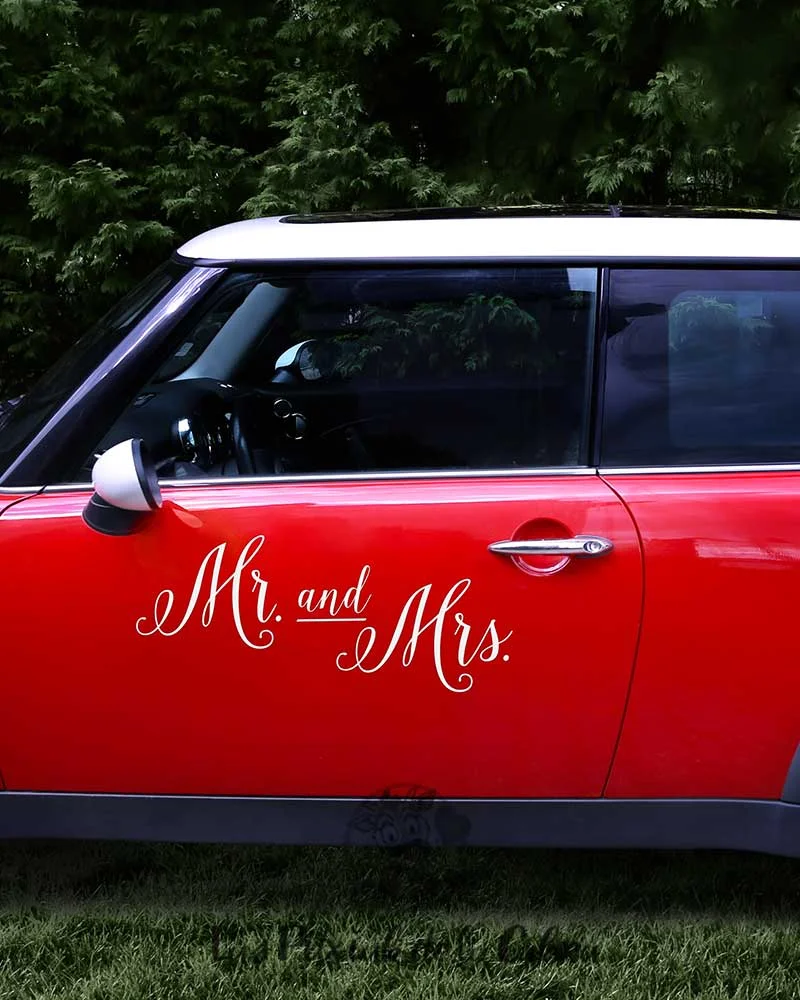 Decora el coche de vuestra boda con este bonito Vinilo para coche “Mr and Mrs”