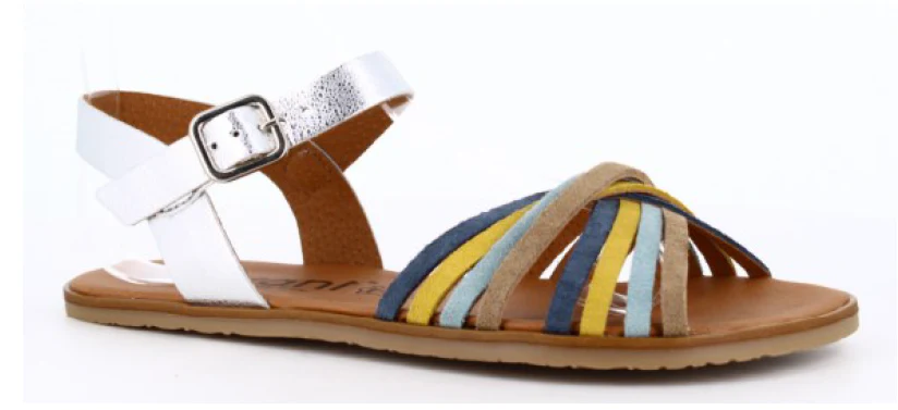 La sandalia Vivant Capricci Benur Ser Met es una explosión de color y comodidad para el verano. Este modelo barefoot para mujer une el diseño artesanal con el respeto absoluto por la salud del pie. Fabricadas en España, destacan por su original combinación de tiras de serraje en tonos azules, amarillos y tierra, rematadas con un sofisticado cierre metalizado.
