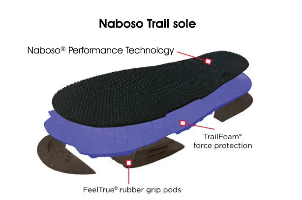 La sandalia Naboso Trail sigue teniendo una suela de 3 capas, como la Z-Trail. Hemos utilizado el material Naboso® Performance como plantilla (mira foto).