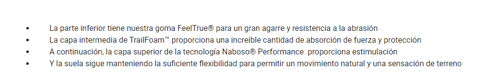 - Y la suela sigue manteniendo la suficiente flexibilidad para permitir un movimiento natural y una sensación de terreno