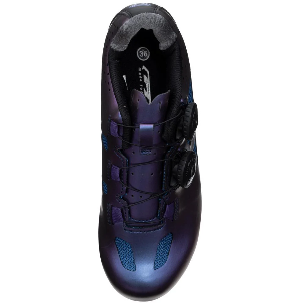 La capellada cuenta con insertos en malla transpirable lo que genera reducción de peso y mejores prestaciones. Doble sistema A top para un ajuste preciso. En la parte del talón cuenta con una tela estilo escama de pescado, permite que el pie entre fácil pero en la dirección opuesta genera obstrucción, lo que hace mantener el pie en posición al momento de pedalear.