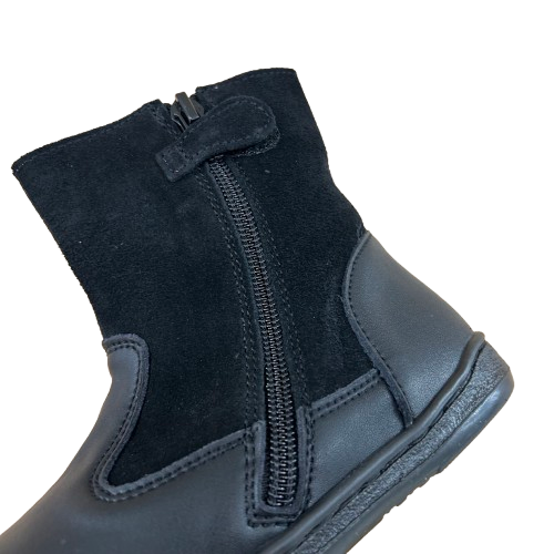 Incorporan cremallera interior, que facilita ponerse y quitarse las botas de manera rápida y segura, fomentando la autonomía. La suela flexible y antideslizante garantiza estabilidad y seguridad en cada paso, acompañando la pisada natural y favoreciendo el desarrollo muscular del pie.